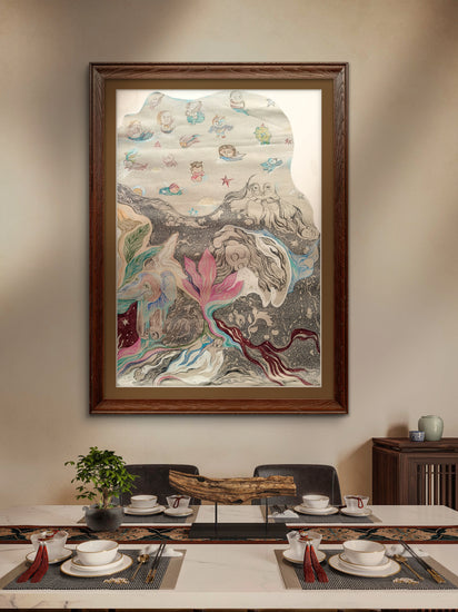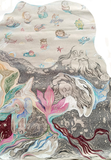 Drawing strong characters from tales of history and mythology, Kanika's artworks reimagine them in a whole new surreal panorama. There is fantasy and playfulness hidden in her pastel hued landscapes.