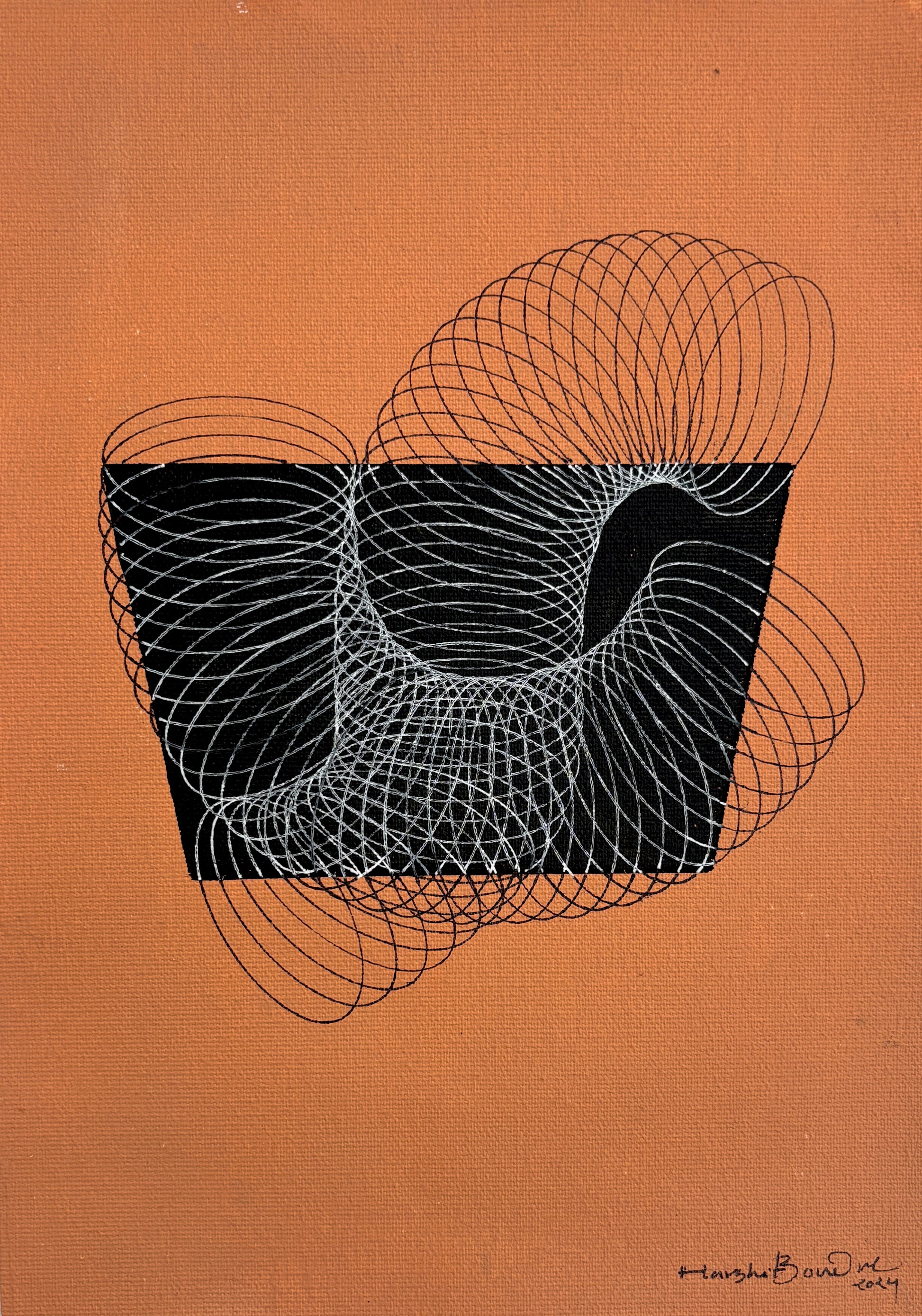 Harshit Bondre’s utilisation of lines and shapes as a conceptual artist was influenced by his awareness of human interaction with nature and how the beauty of colours harmonises it. He finds inspiration by studying the various dimensions around him, including time, space, music, shadows, shapes, various personalities, and their behaviour. This current body of work is a series of paintings that depicts how he sees the fourth-dimensional universe. For which, he made forms based on observations in an attempt to illustrate. For instance, angular edges represent a specific type of action or behaviour, or the path of the light is represented by the angles formed by endless lines. Each piece in this collection of artwork reflects the impact of many circumstances, seasons, behaviours etc. The beauty lies in the planned unpredictability of it all. Bondre completed his BFA from Pune University, 2010.He continues to live and work out of Pune, India.