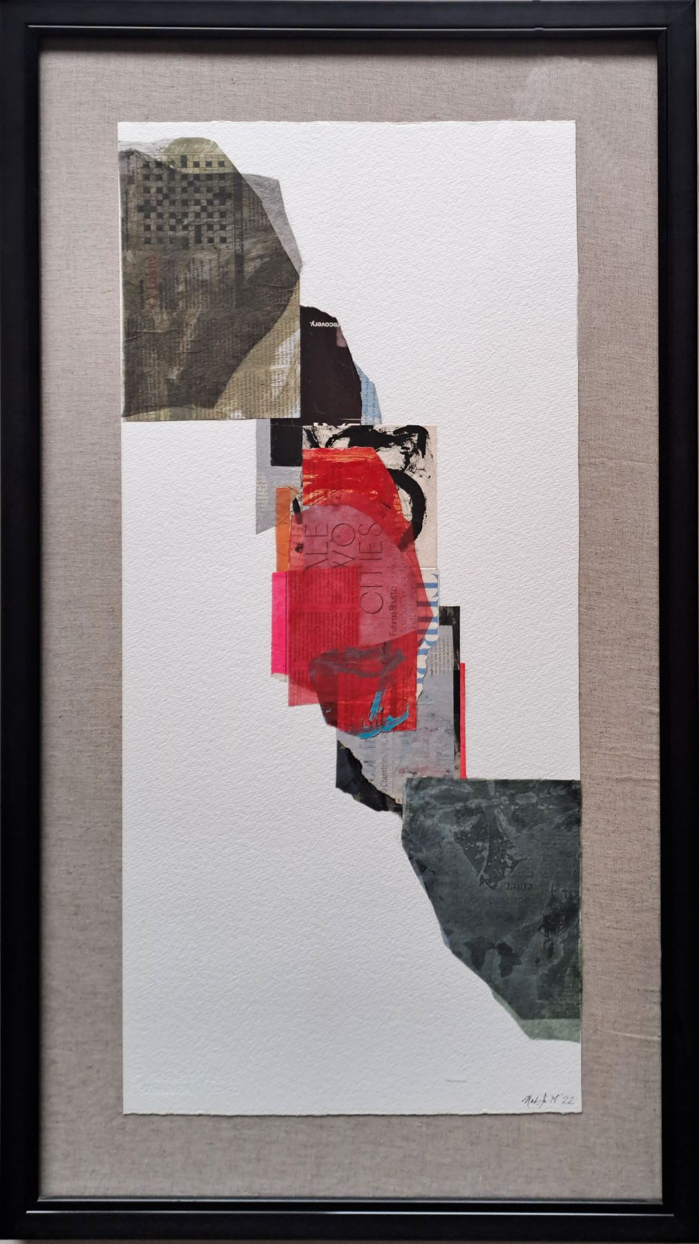 Nahid Merchant uses her background in fashion design to translate abstract compositions onto canvas, blending line, form, and texture in an expressive symphony of colors. Her two dimensional works find an unexpected third dimension through her exploration of draping, transforming her paintings into a tactile, experiential journey.