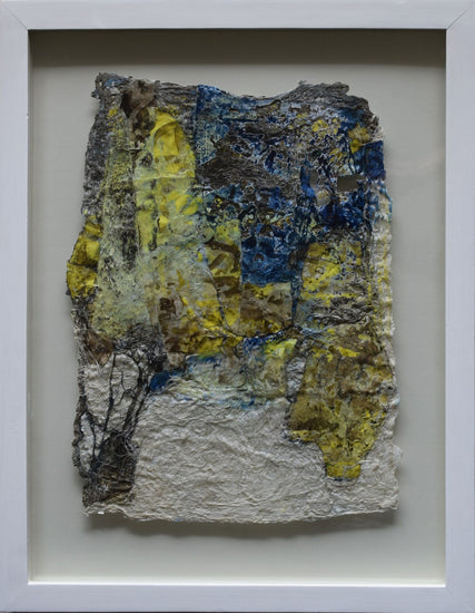 Smita Mandlik focuses on spaces, places, and natural interconnectedness. Her pieces evoke the residues of relationships through a delicate mix of materials, allowing the viewer to sense the emotional weight embedded in her works.